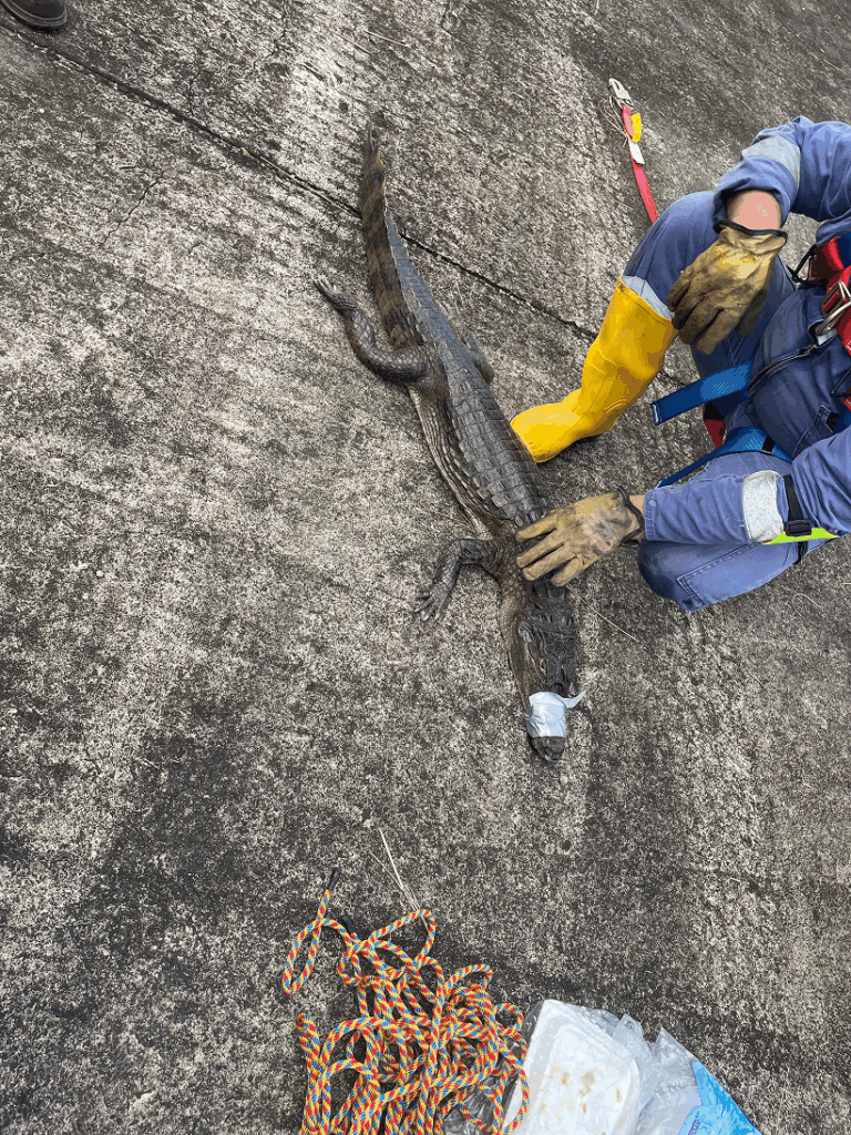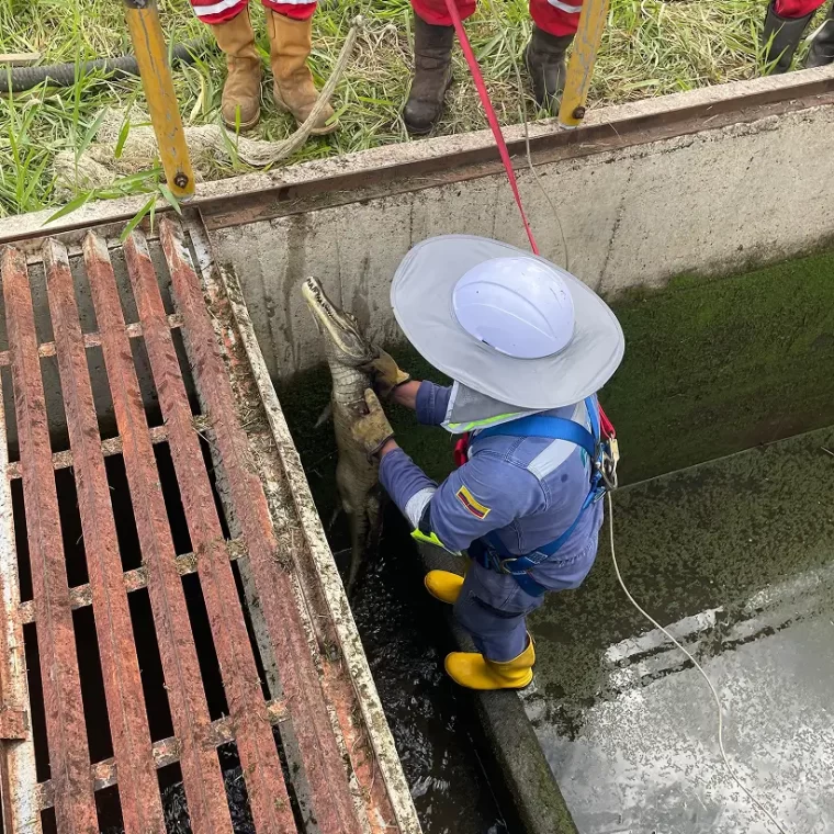Gracias al compromiso y experiencia del personal, la babilla fue capturada en óptimas condiciones, garantizando tanto la integridad del ejemplar como la seguridad de la comunidad laboral del área.
